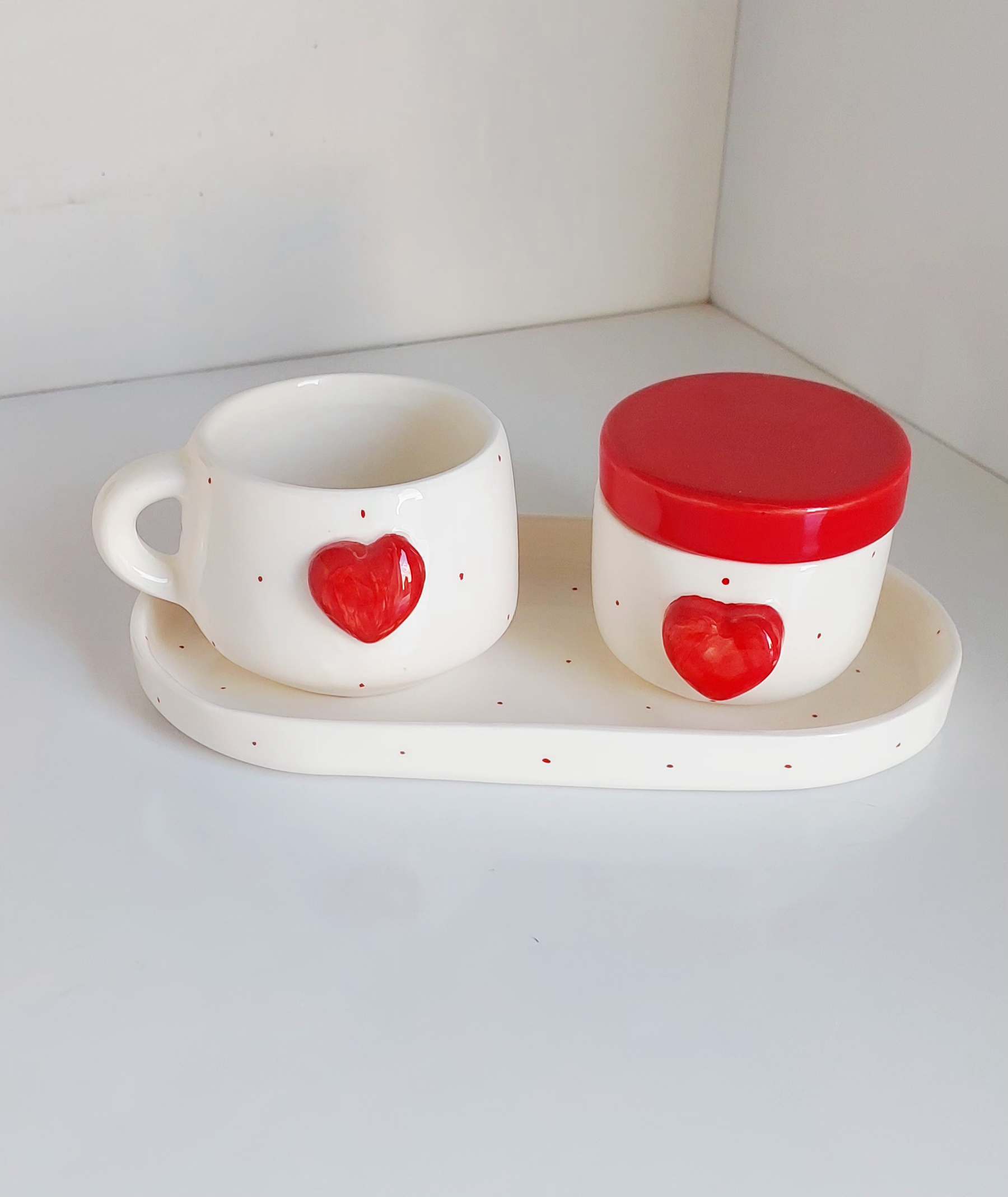 ست های دونفره چایخوری سرامیک دستساز با درب چوبی