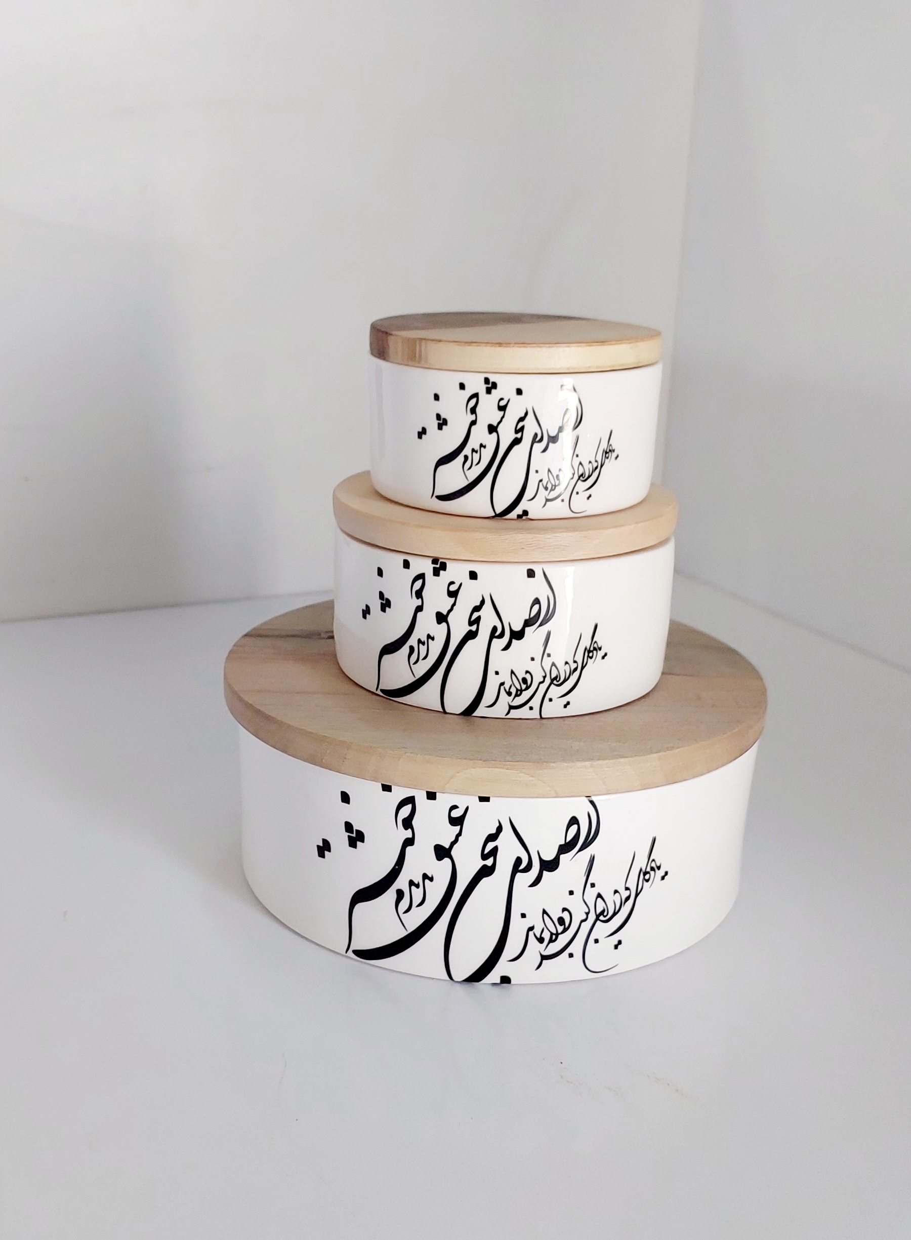 / گل طلایی / گلسرخی / گل آبی / برگ سبز / خطاطی